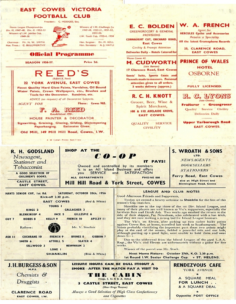 1956 - East Cowes Vics V Shanklin - Hants Senior Cup 1st Round Saturday October 20th 1956. Result: Shanklin 5 - 1 East Cowes Vics